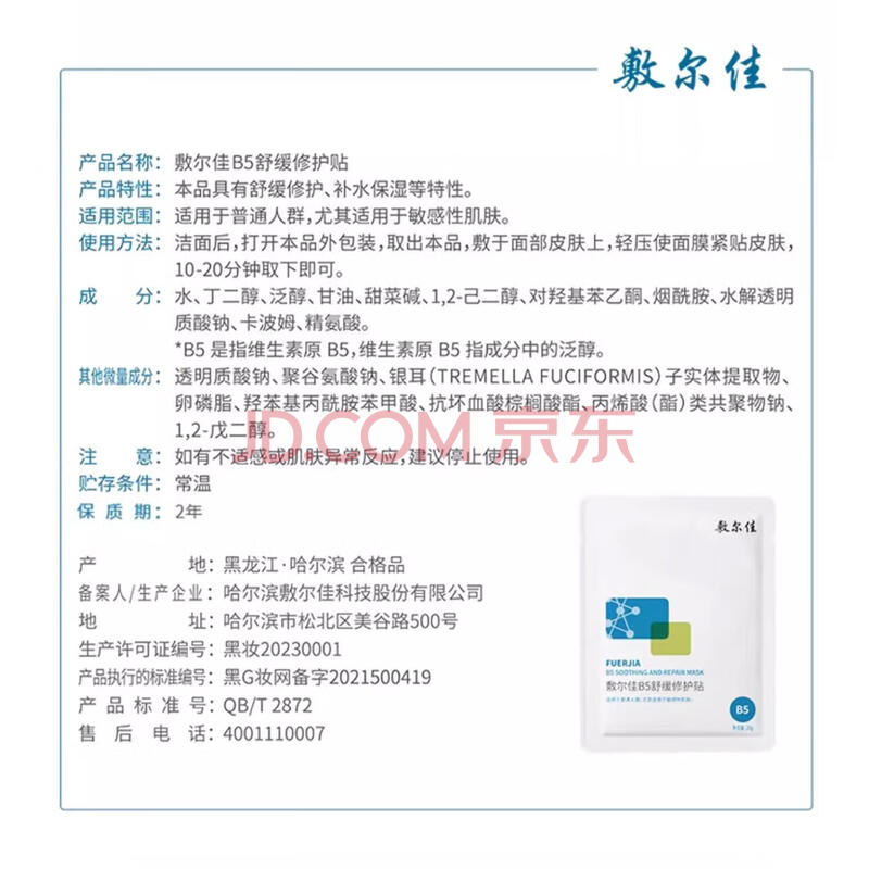 商品相册:敷尔佳【成毅同款】B5舒缓修护贴5片 补水保湿改善泛红 礼物第