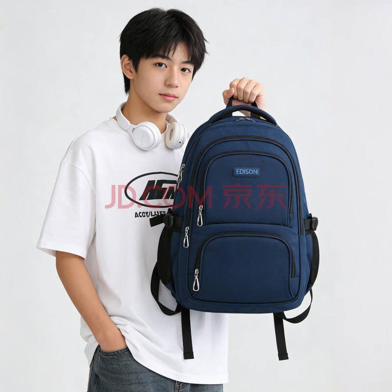 商品相册:Edison爱迪生中学生书包护脊减负多隔层防泼水初中高中大容量背包310-3第
