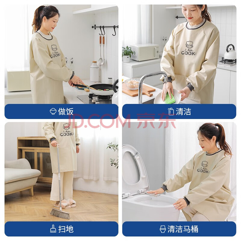 商品相册:LYNN围裙厨房长袖罩衣防水防油污成人耐磨耐脏男女时尚家务围裙长袖第