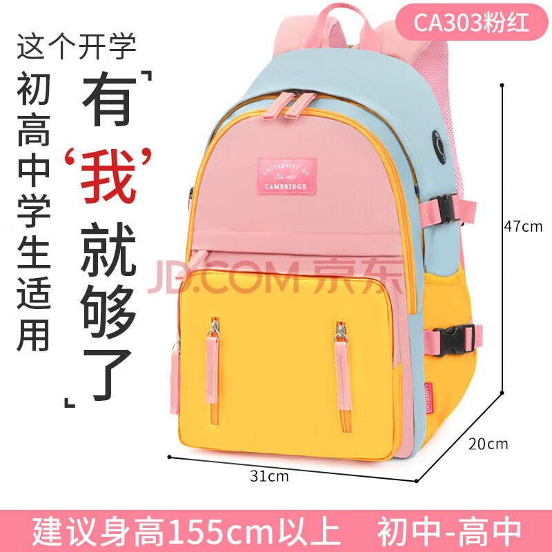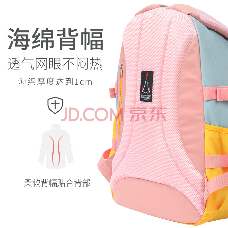 商品相册:UNIVERSITY OF CAMBRIDGE书包女初中生大容量中学生双肩包时尚减负高中生休闲包CA303粉红第