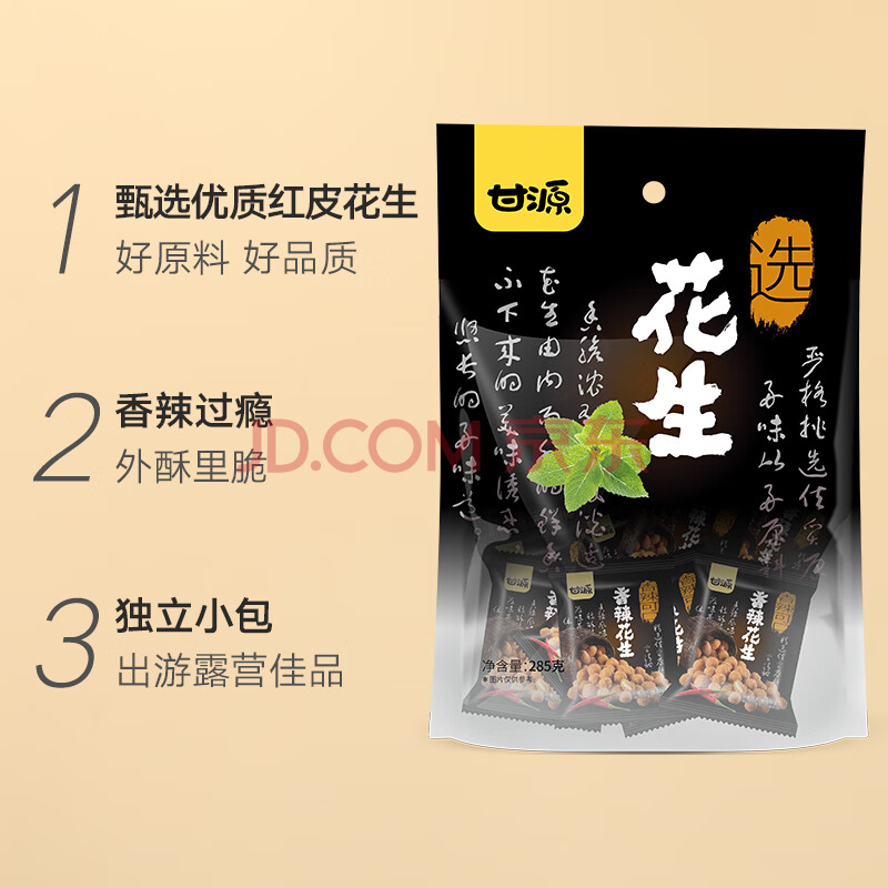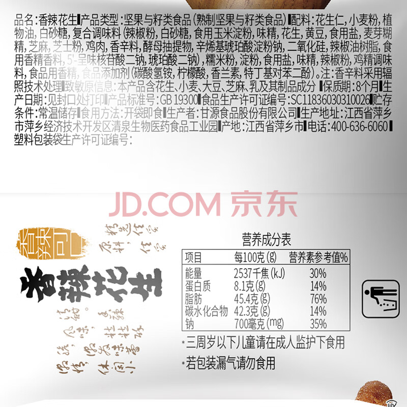 商品相册:甘源牌花生香辣味285g坚果炒货休闲零食小吃香酥熟花生米下酒菜第