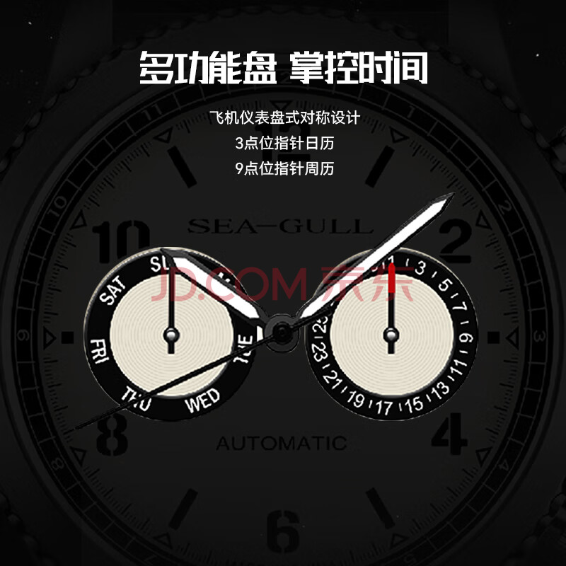 商品相册:海鸥(SEAGULL)手表男自动机械表 日历星期双时区夜光男士手表生日礼物6183白黑第