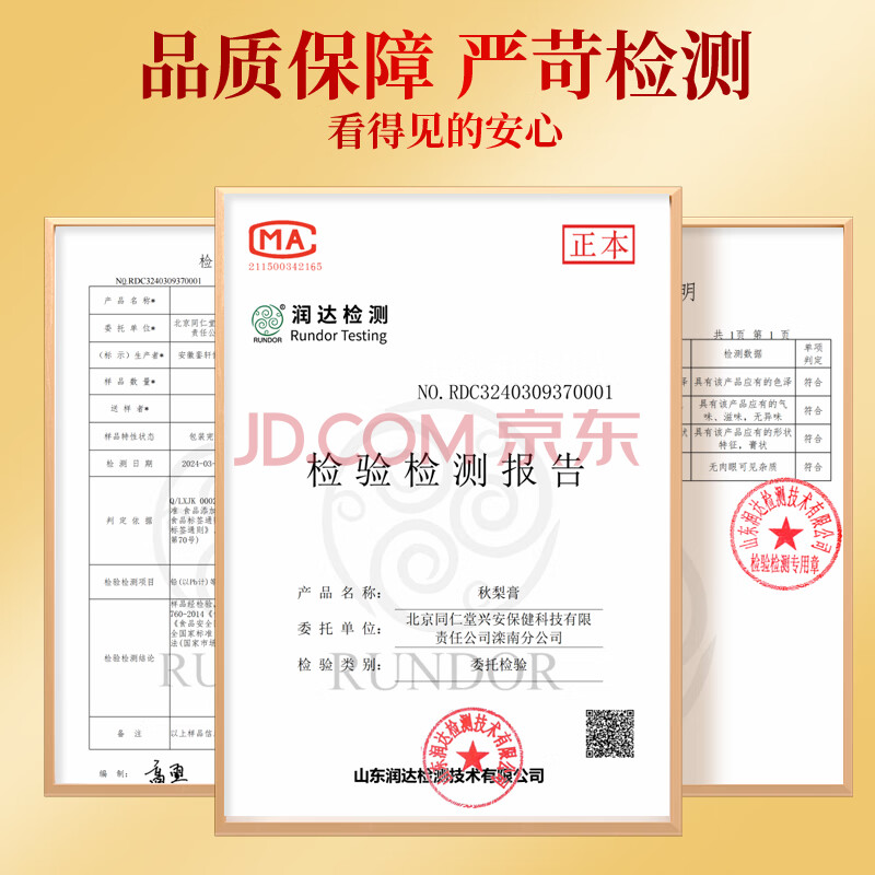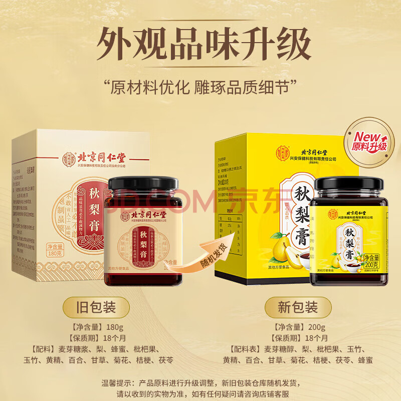 商品相册:同仁堂北京同仁堂秋梨膏雪梨百合蜜炼枇杷儿童0添加搭润肺止咳化痰200g第
