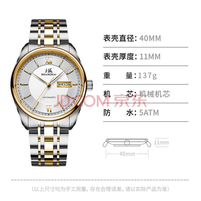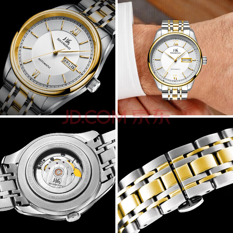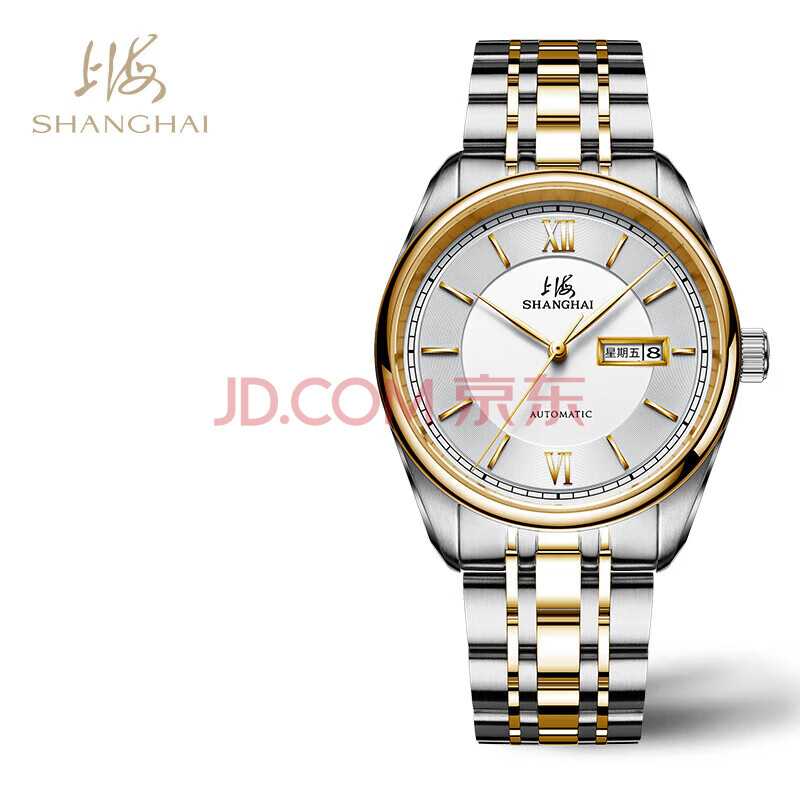 商品相册:上海(SHANGHAI)手表男款 男士自动机械表 国民系列 商务经典 白盘间金SH3008G-1第