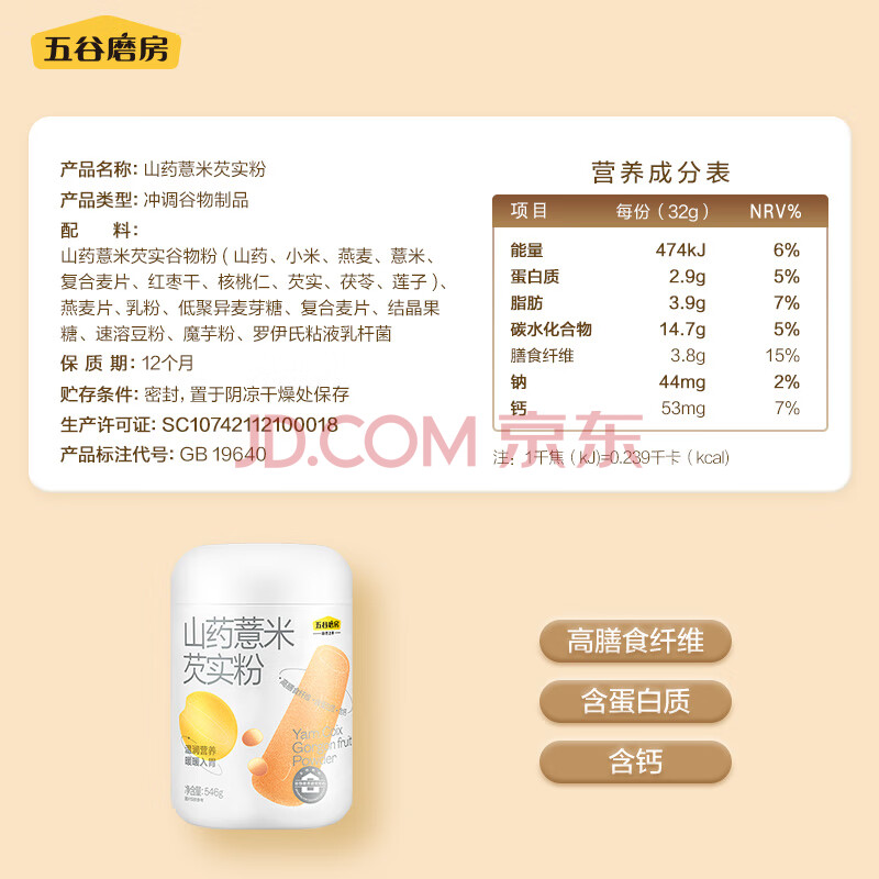 商品相册:五谷磨房山药薏米粉芡实粉养胃食品五谷营养早餐代餐粉546g第