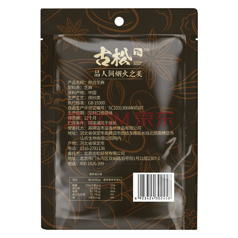 商品相册:古松炒熟白芝麻100g 五谷杂粮免洗烘焙即食 黑芝麻伴侣 品牌始于1998第