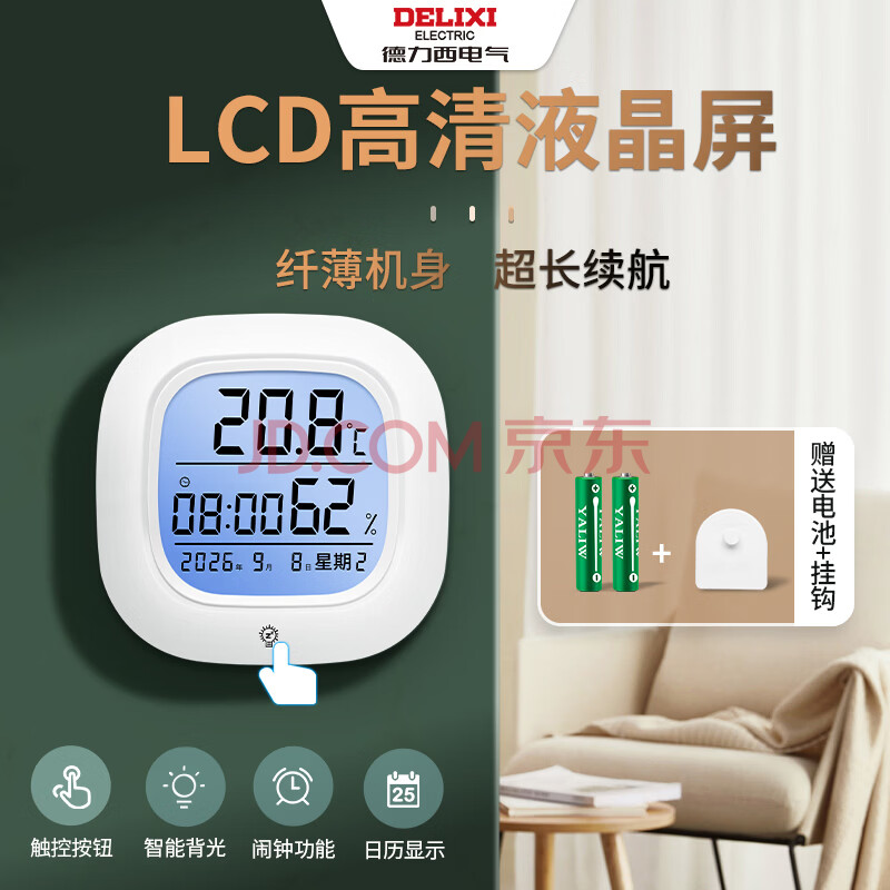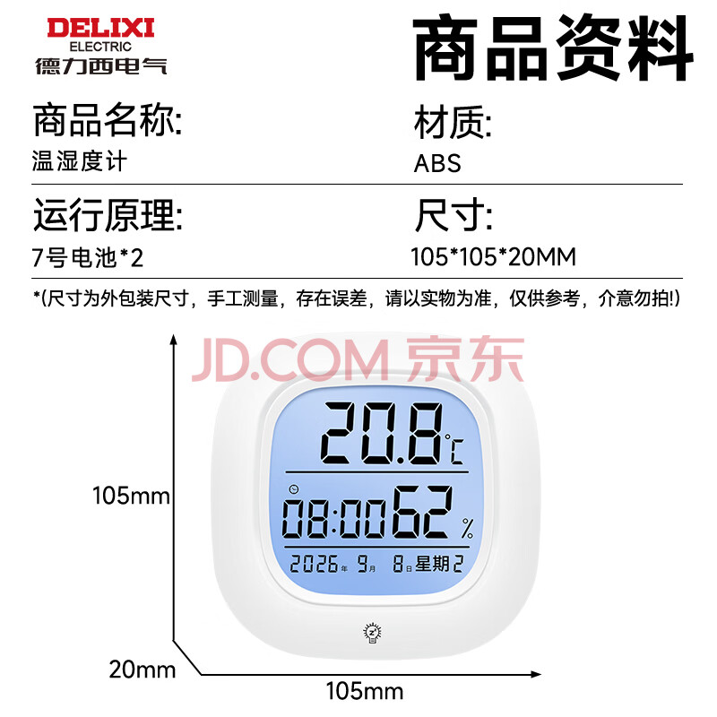 商品相册:德力西电气(DELIXI ELECTRIC)精准温湿度计家用室内温度计高精度创意客厅房间挂墙室温计第1张/共5
