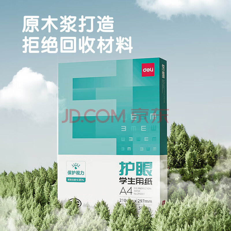 商品相册:得力(deli)本色护眼A4打印纸 75g500张一包 单包复印纸 学生作业草稿纸 双面低白ZF6001【护眼本色】第