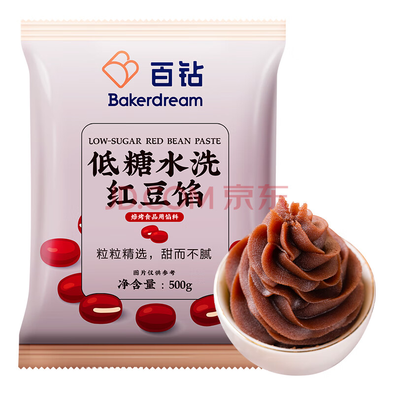 商品相册:百钻家用烘焙红豆沙馅料500g 低糖水洗食材豆沙包面包糕点原料第