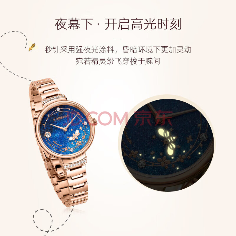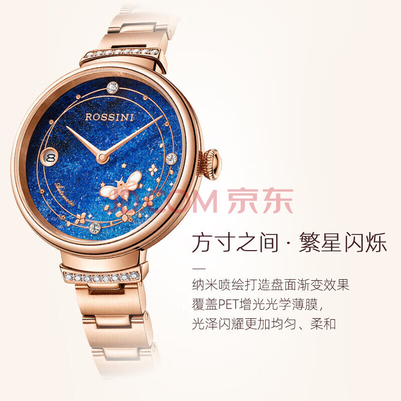 商品相册:罗西尼(ROSSINI)手表女自动机械表蓝盘钢带生日礼物送女友国表气质夜光 5210082第