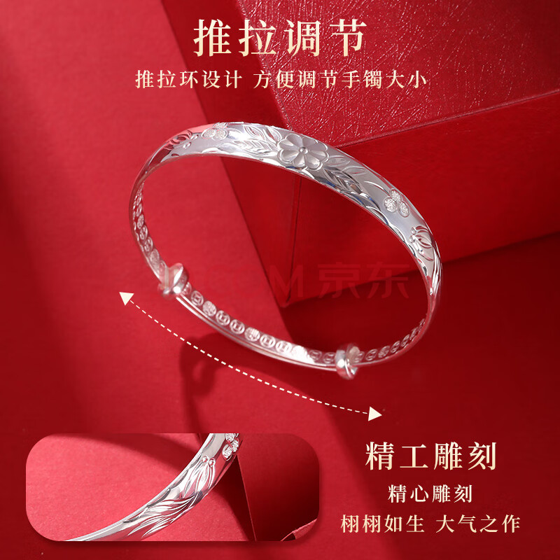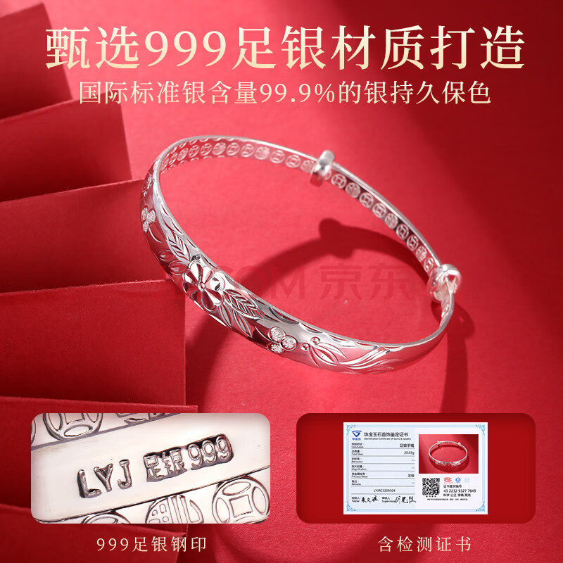 商品相册:老银匠s999足银手镯双鱼格桑花银手镯中老年银镯子女新年礼物送妈妈第