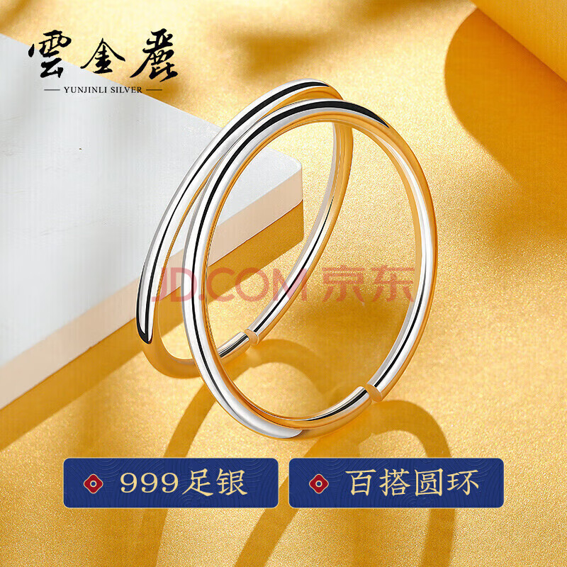 商品相册:云金丽银手镯999足银男女款经典情侣手镯简约银饰银镯子情人节礼物第