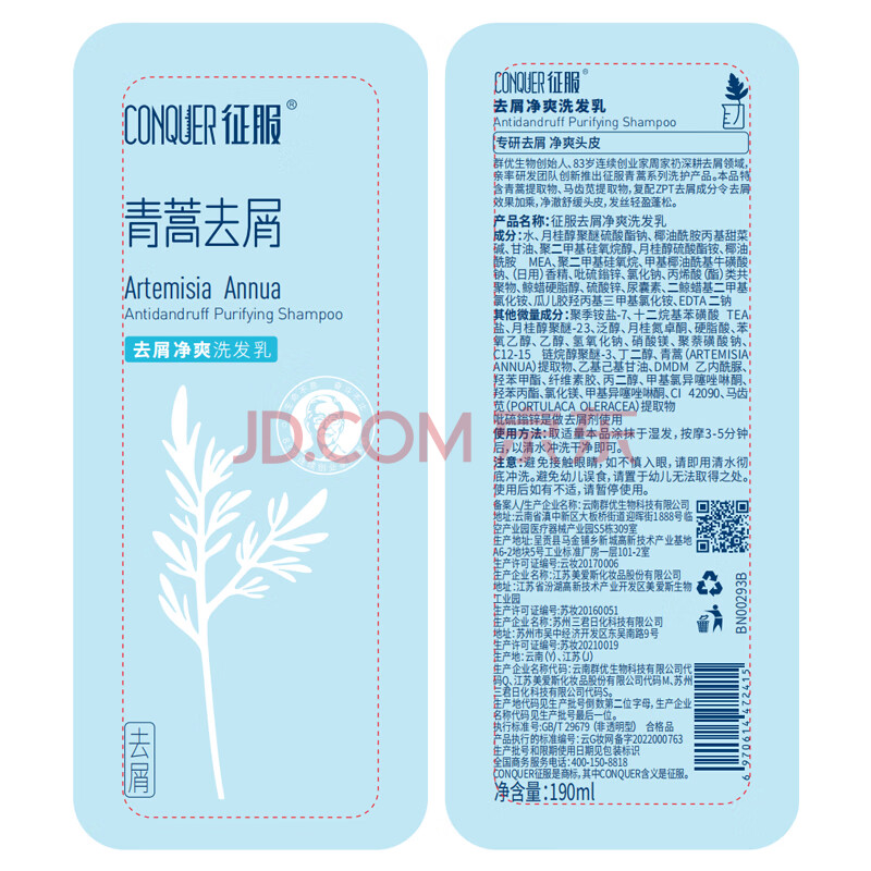 商品相册:征服洗发水去屑止痒控油持久蓬松洗头膏金榜第1名青蒿洗发露40ml第
