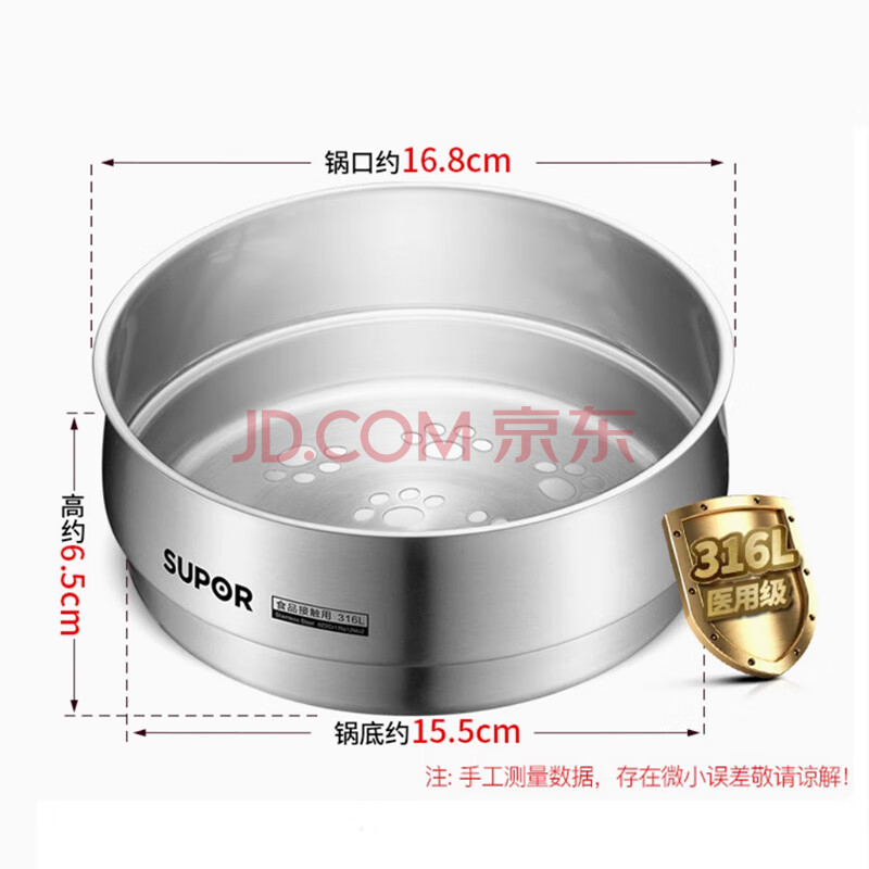 商品相册:苏泊尔 SUPOR 奶锅316L不锈钢蒸格16cm蒸屉辅食锅通用蒸笼SZ16F1第1张/共6
