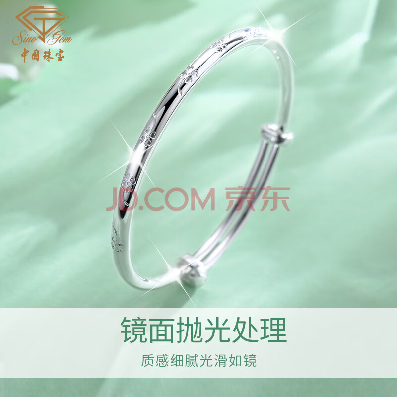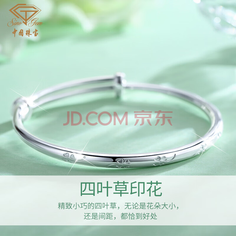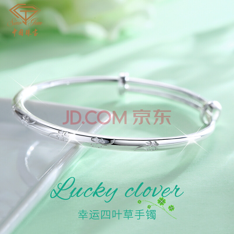商品相册:中国珠宝生日礼物送女友四叶草银手镯足银999银镯子银饰约20g第