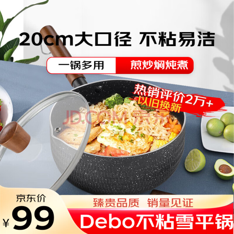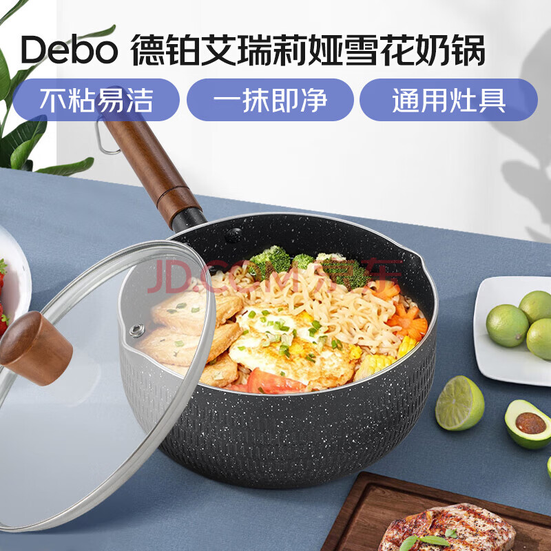商品相册:Debo德铂奶锅不粘雪平锅辅食煮面小汤锅燃气电磁炉通用20cm第