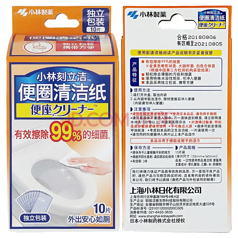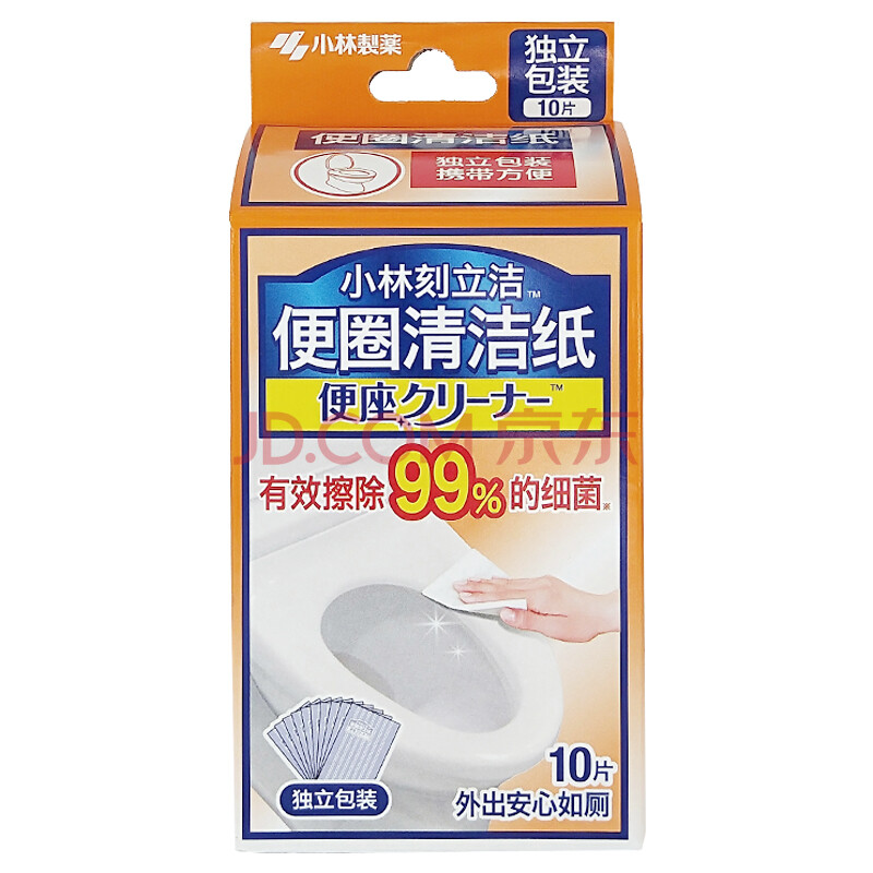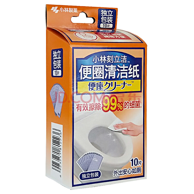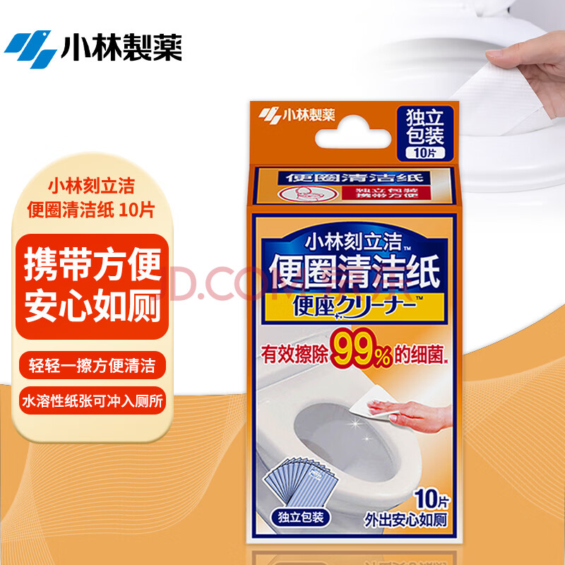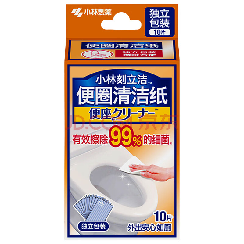 商品相册:小林制药(KOBAYASHI)刻立洁便圈清洁纸10片马桶厕所坐便器湿纸巾去除污渍一次性湿巾第