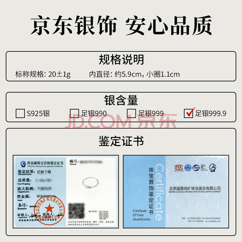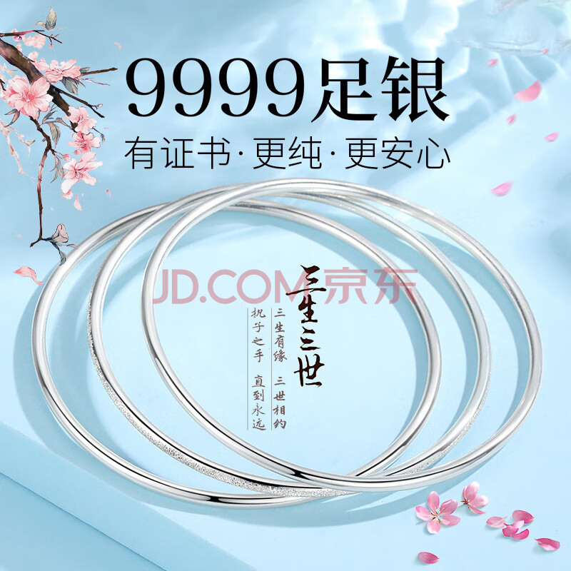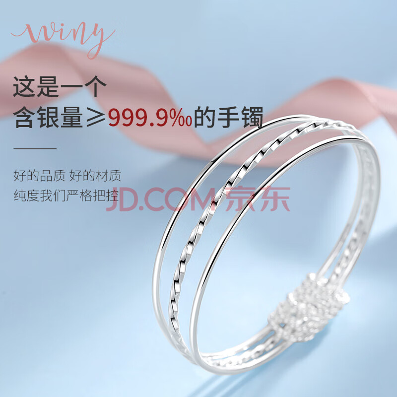 商品相册:唯一(Winy)银手镯女款足银9999实心镯子正品纯银饰品生日礼物送妈妈老婆女友第