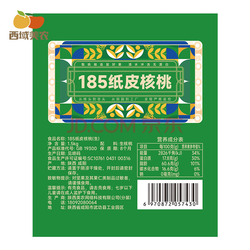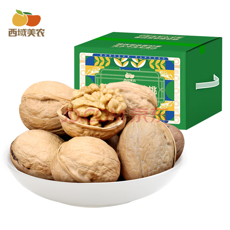 商品相册:西域美农新疆温宿185纸皮核桃3斤 当季新果礼盒 手捏开壳无浸泡休闲零食第1张/共8