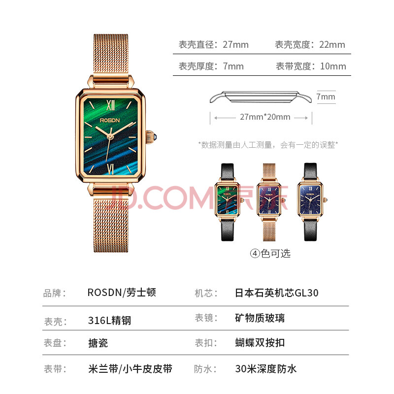 商品相册:劳士顿(ROSDN)小绿表手表女超薄时尚气质防水女士手表十大品牌生日礼物送女友第