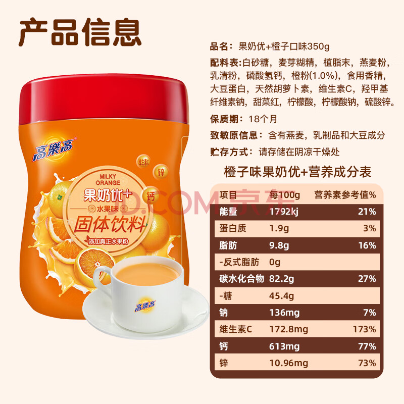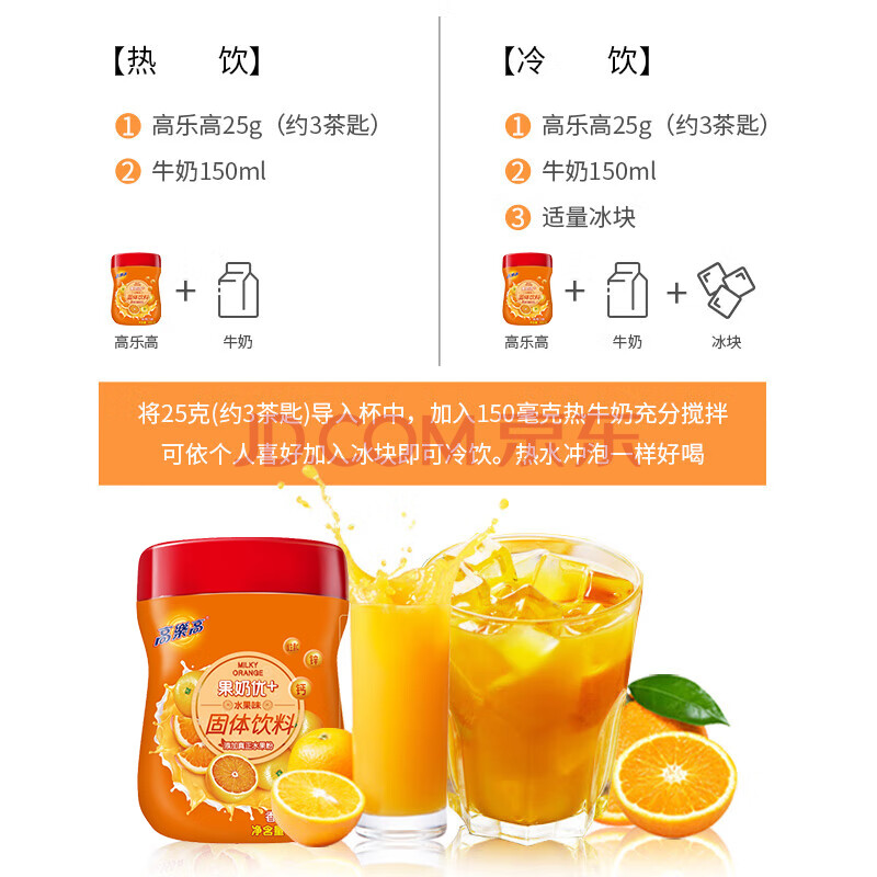 商品相册:高乐高 果汁橙汁粉 即食早餐冲饮冲剂速溶固体饮料 橙子味 350g/罐第