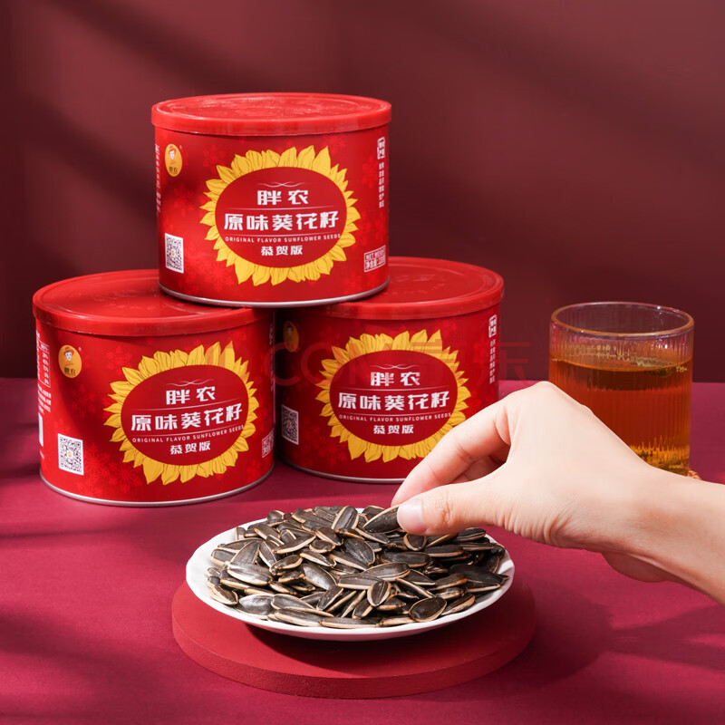 商品相册:胖农 休闲零食 坚果炒货 内蒙原味超大香瓜子恭贺版喜宴葵花籽220g/罐第