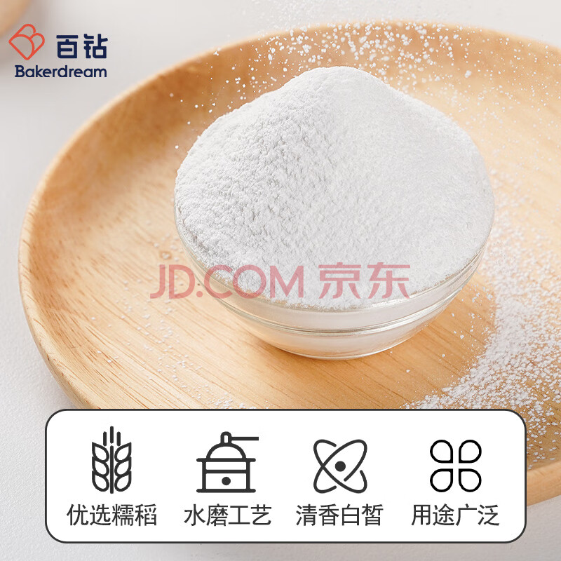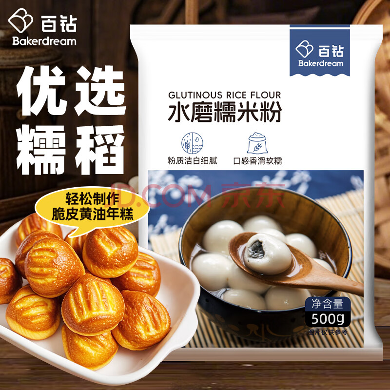 商品相册:百钻水磨糯米粉500g汤圆粉家用做雪媚娘皮南瓜饼黄油年糕糍粑烘焙原料第