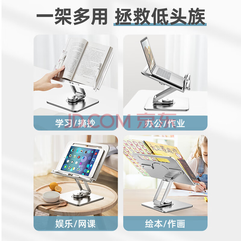商品相册:南国书香铝合金阅读支架多功能儿童绘本读书支架学生成人看书神器阅读书架桌上桌面 360°旋转可升降第