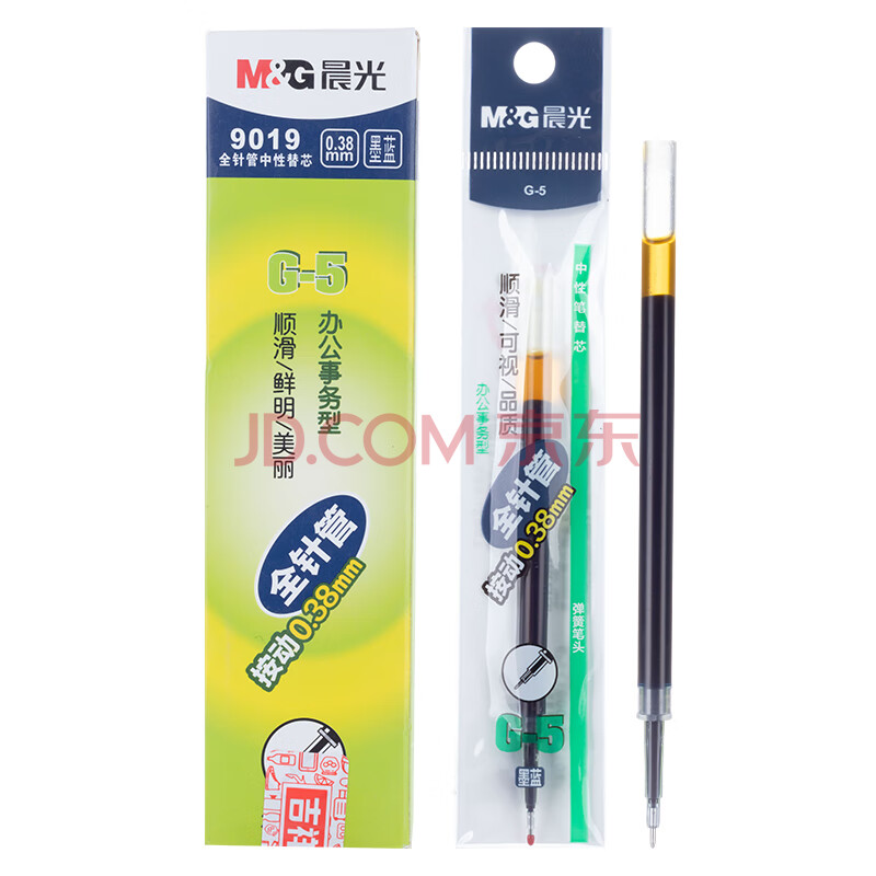 商品相册:晨光(M&G)文具G-5按动中性笔芯0.38替芯签字笔芯学生速干全针管水笔芯办公用品1008/K35/S01适用 墨蓝20支/盒第