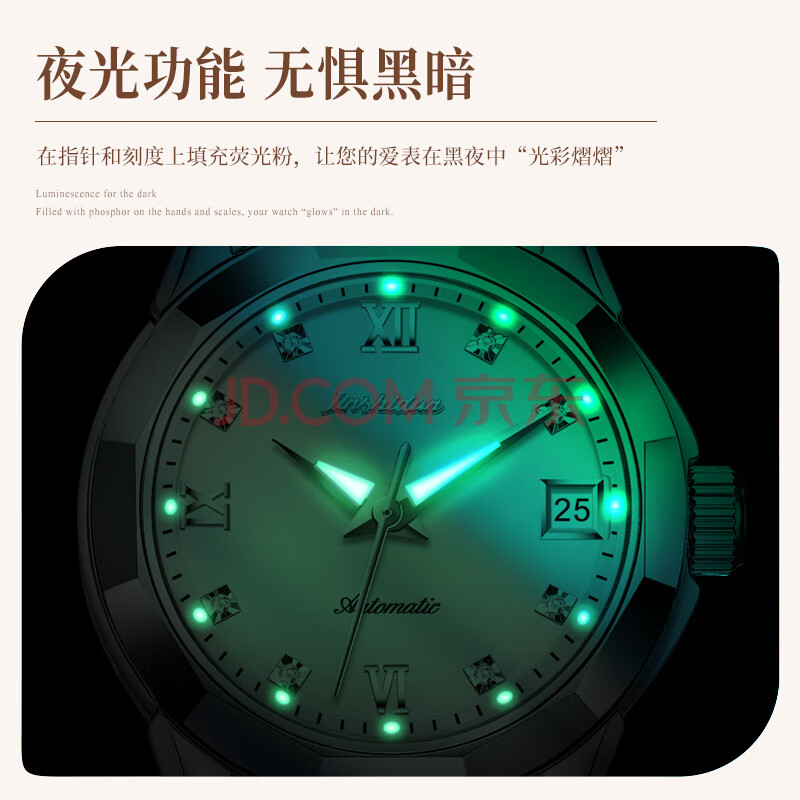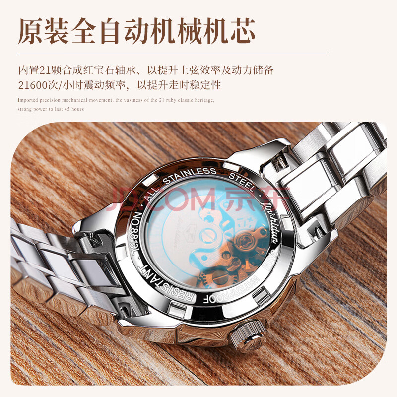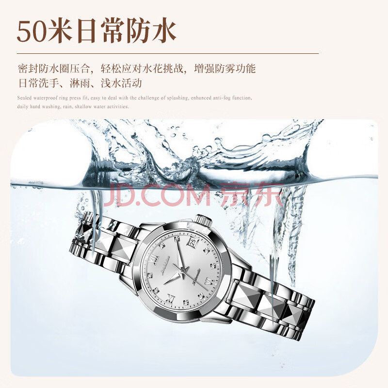 商品相册:金仕盾(JIN SHI DUN)京东自营瑞士认证品牌女士手表新款全自动机械表钨钢腕表生日送礼第