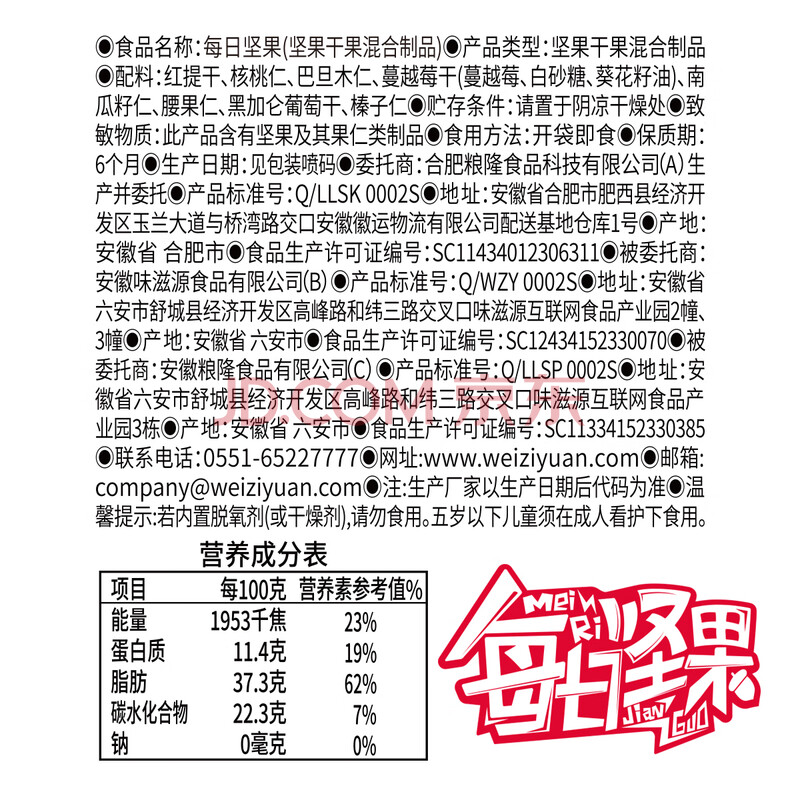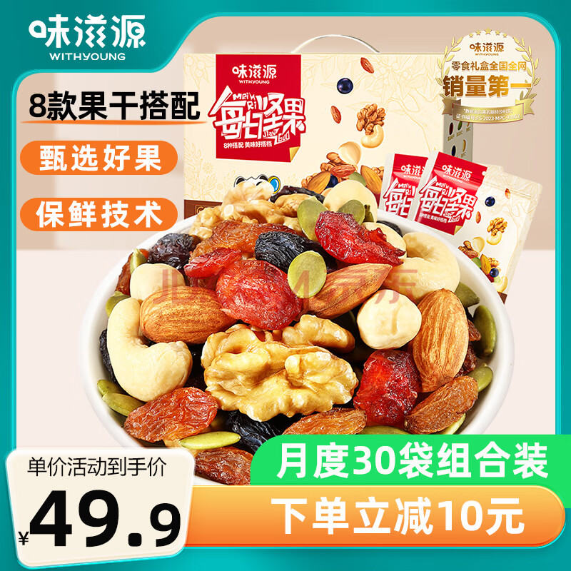 商品相册:味滋源每日坚果30袋礼盒装 儿童零食巴旦木核桃南瓜子仁 节日团购送第