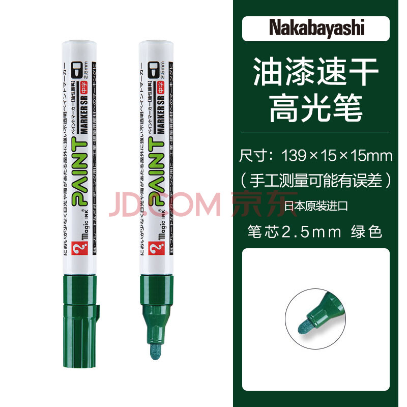商品相册:Nakabayashi仲林油漆笔高光笔1.2mm速干涂鸦笔防水不褪色记号笔 绿色单支 2.5mm第