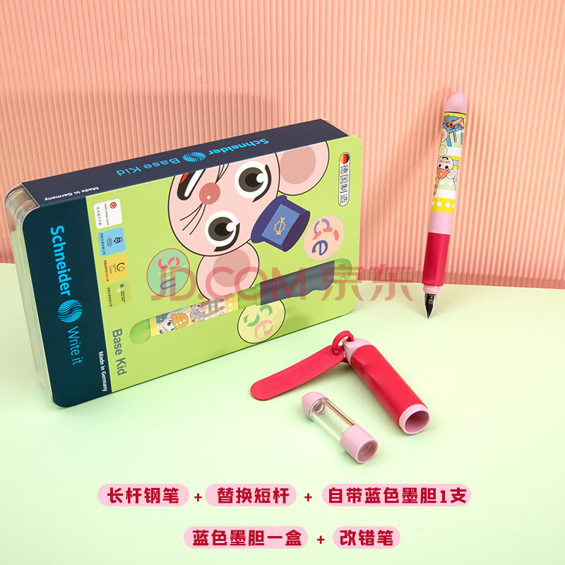 商品相册:施耐德(Schneider)钢笔成长礼盒套装 学生可擦直液式练字正姿钢笔EF尖儿童开学季大礼包BASE kid-可爱鼠粉第