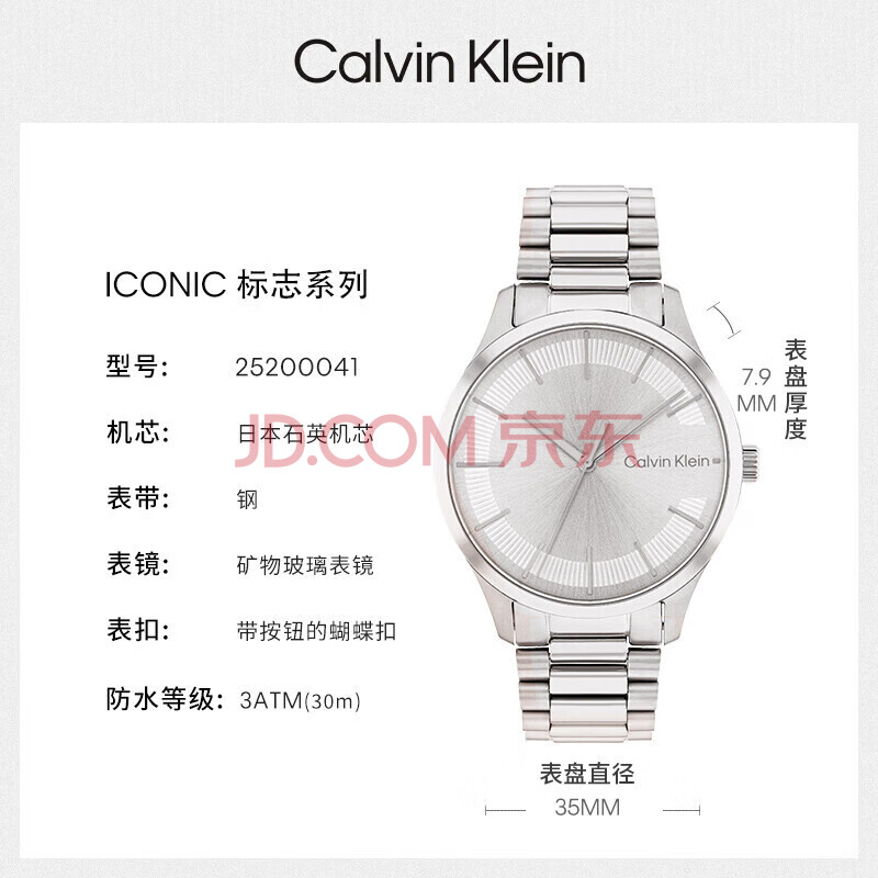 商品相册:Calvin KleinCK手表logo款钢带石英中性腕表情侣手表生日新年礼物25200041第