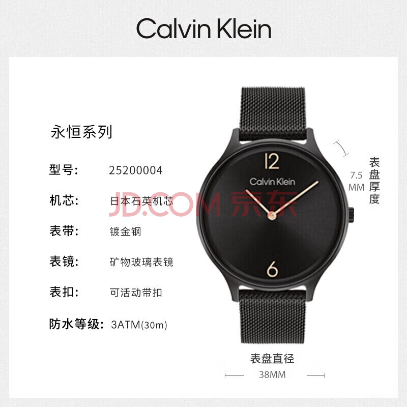 商品相册:Calvin KleinCK手表永恒款钢带石英女表女神节新年礼物女25200004第