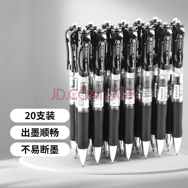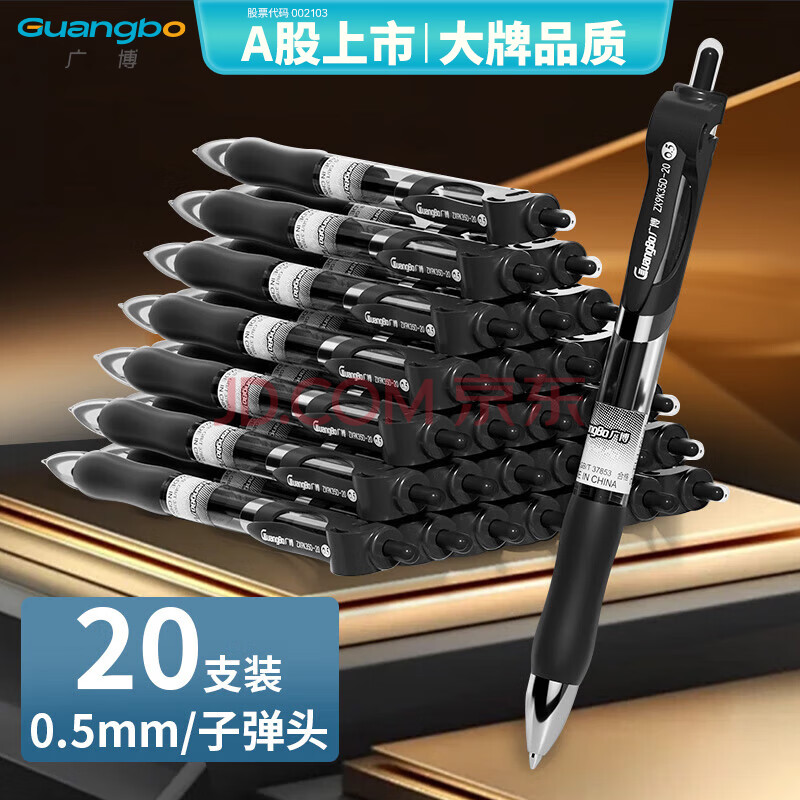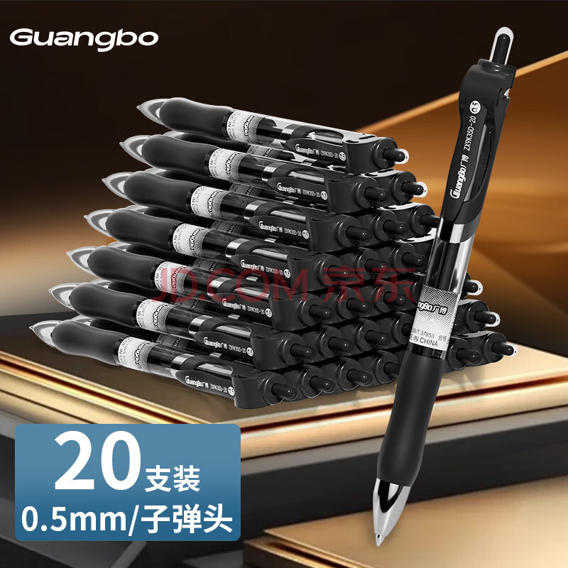 商品相册:广博(GuangBo)中性笔签字笔按动笔 0.5mm黑色子弹头水笔黑笔 文具办公用品学生用笔 20支/盒 ZX9K35D-20第