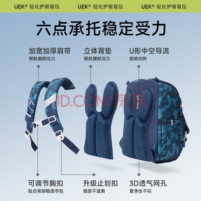 商品相册:UEK超轻书包小学生男一二三年级儿童减负护脊轻便女孩双肩包休闲第