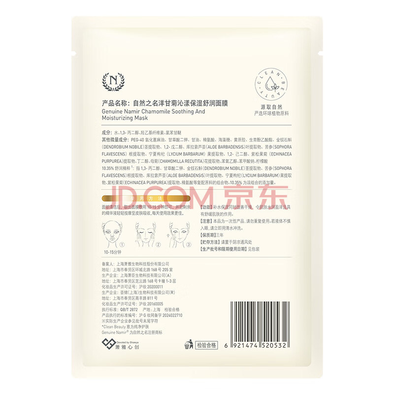 商品相册:自然之名洋甘菊沁漾补水舒润保湿面膜 换季舒缓面膜轻薄膜布20片 生日礼物第