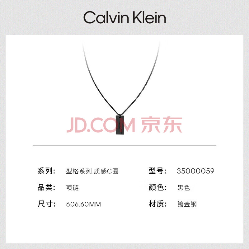 商品相册:Calvin KleinCK型格小方块男士军牌项链男送男友黑色35000059新年礼物第