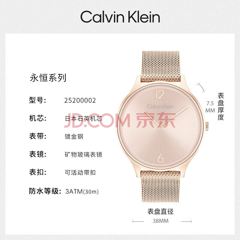 商品相册:Calvin KleinCK女表简约轻奢双针女石英手表25200002送女友节日礼物第