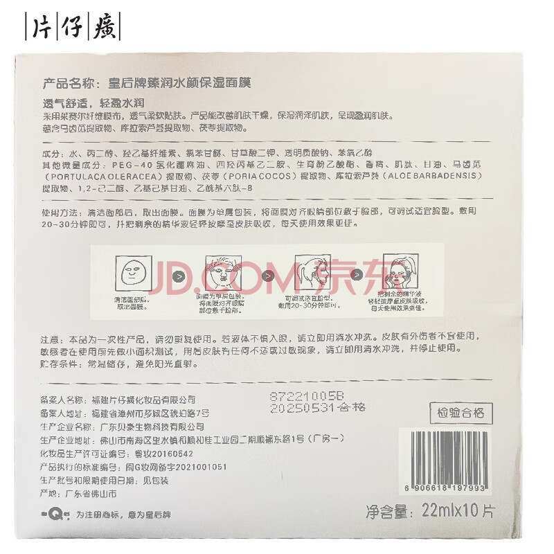 商品相册:片仔癀皇后牌臻润水颜保湿面膜 补水保湿生日礼物22ml*10片装第