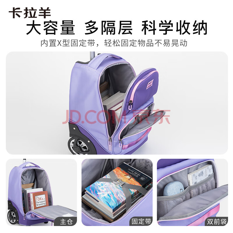 商品相册:卡拉羊中学生拉杆书包男女生小学生可爬楼梯防泼水书包初中生书包大容量第