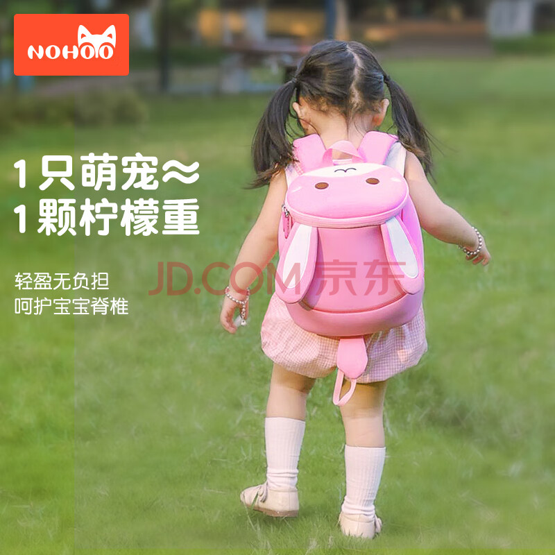 商品相册:诺狐(NOHOO)儿童书包男女孩 幼儿园双肩背包卡通动物防走失绳小包粉兔子小号第