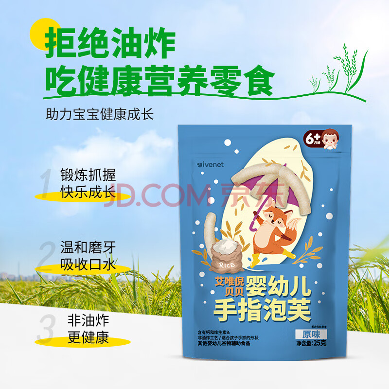 商品相册:艾唯倪(ivenet)婴幼儿手指泡芙辅食磨牙棒6个月以上原装进口宝宝婴儿零食原味25g第