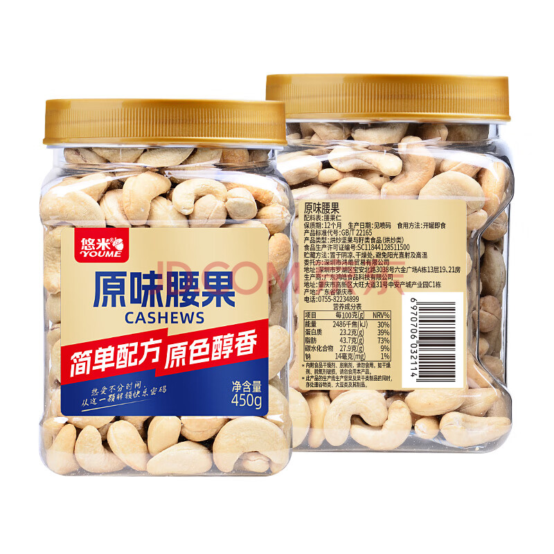 商品相册:悠米原味腰果仁450g坚果炒货干果果仁休闲零食越南腰果坚果年货零食第
