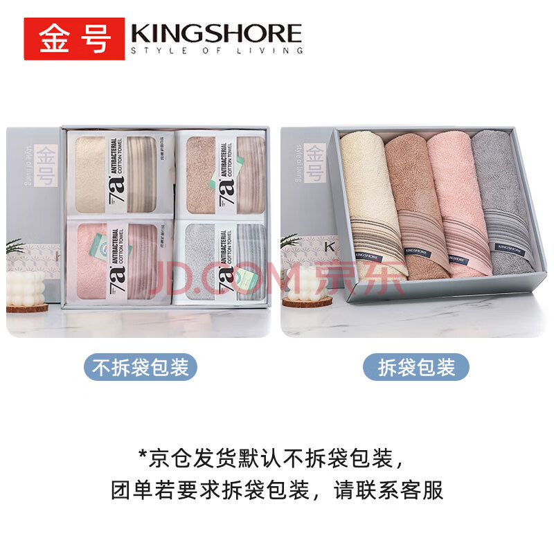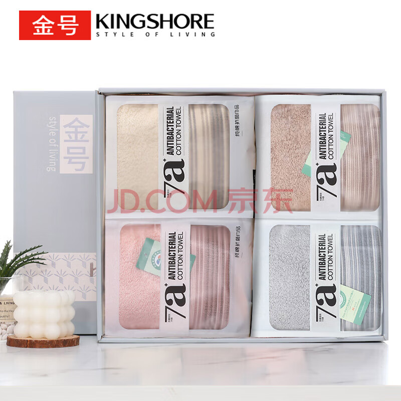 商品相册:金号毛巾礼盒套装 7A级抗菌纯棉加厚洗脸巾 四条装76*35cm 120g/条第