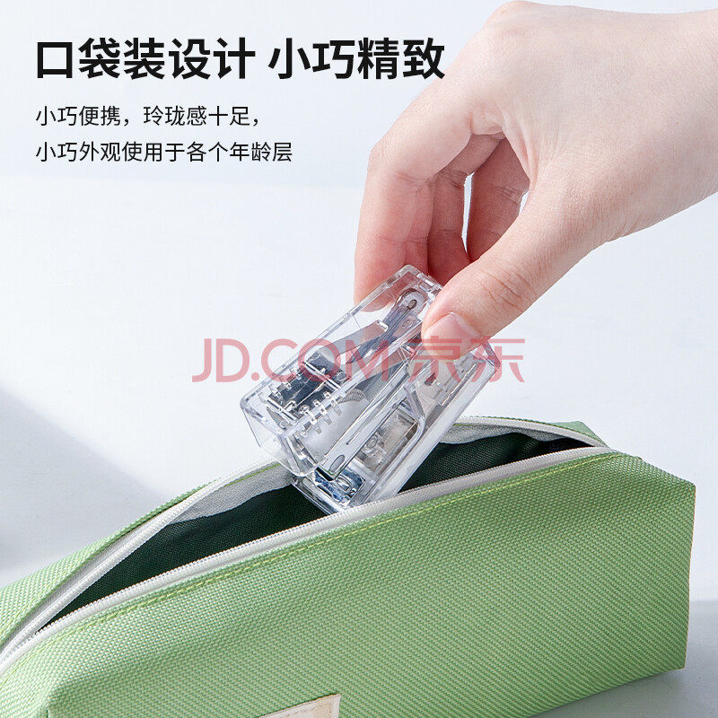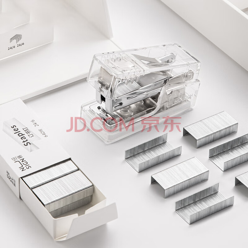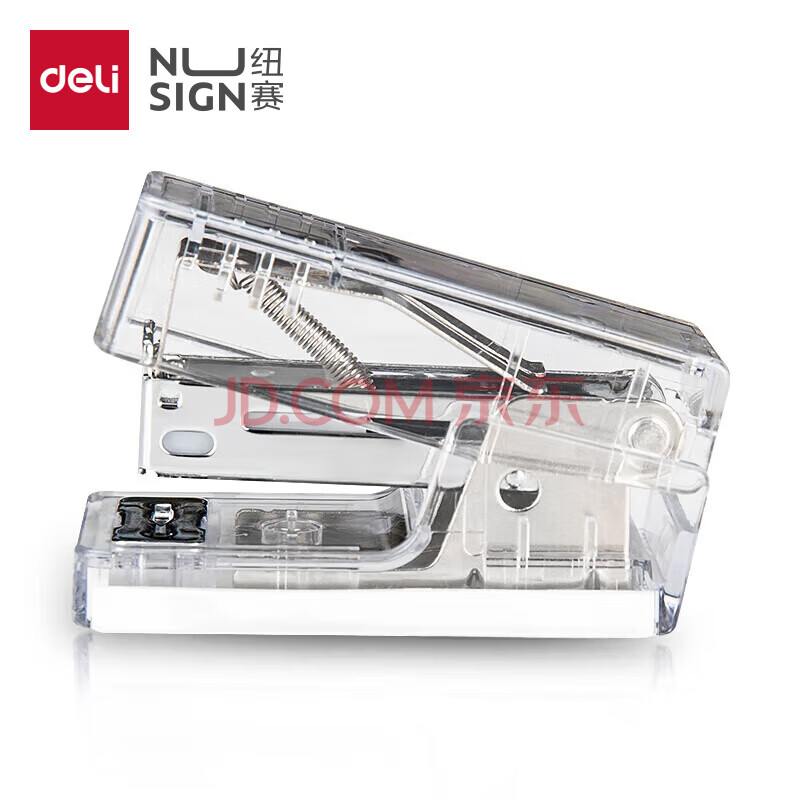 商品相册:纽赛(NUSIGN)透明迷你订书机学生专用 办公轻巧便携订书器小号 赠830枚钉 NS083F第