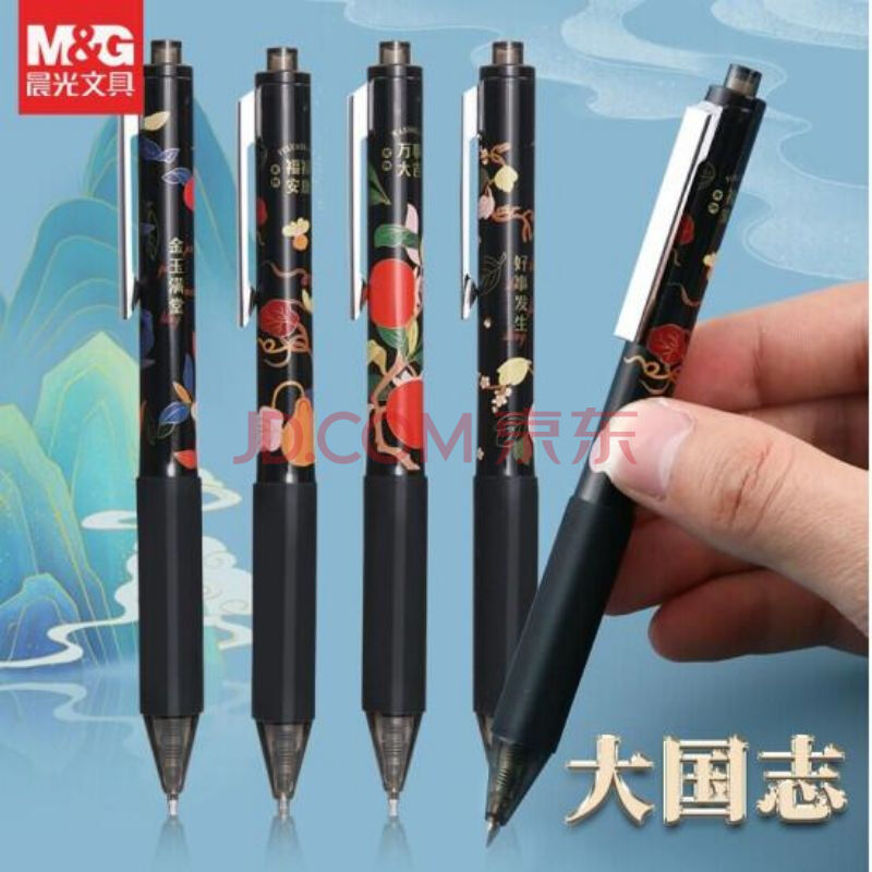 商品相册:晨光0.5mmAGPH26X5大国志系列中性笔签字笔圆珠水性笔学生用高颜值创意中国风黑色 按动子弹头 10支/盒装第