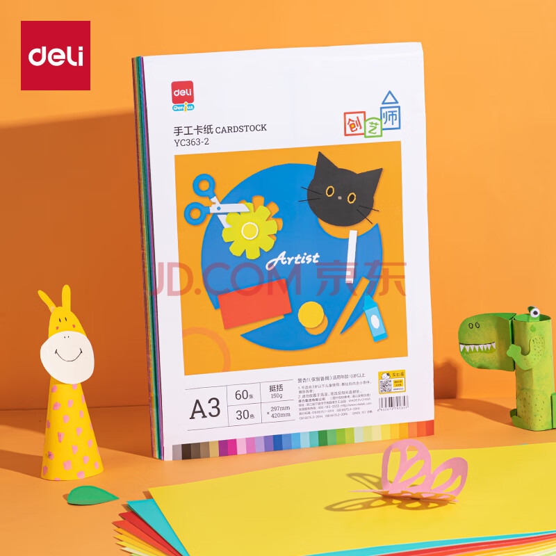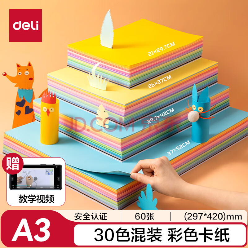 商品相册:得力(deli)【开学文具】30色60张A3硬卡纸彩纸 加厚150g卡纸剪纸手工折纸绘画美工手绘纸 儿童生日礼物第