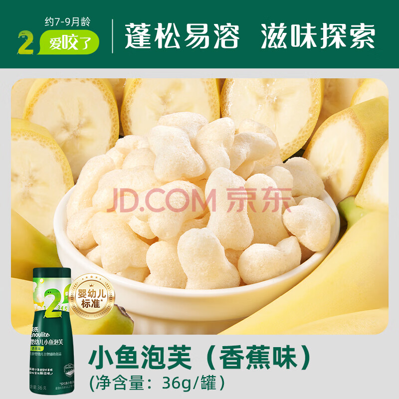 商品相册:英氏(Engnice)婴幼儿泡芙香蕉味 婴儿零食宝宝儿童零食泡芙小鱼泡芙条罐装36g第